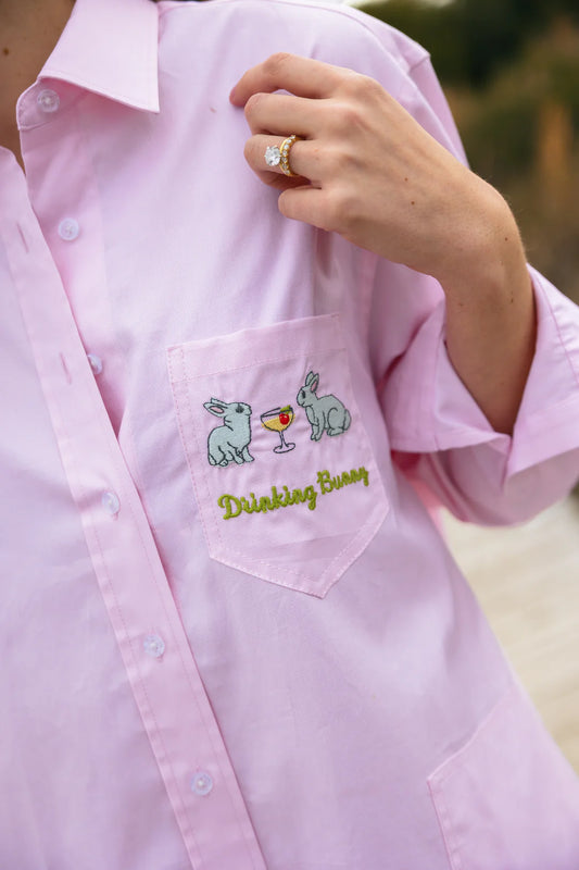 Drinking Bunny Shirtdress- Pink
