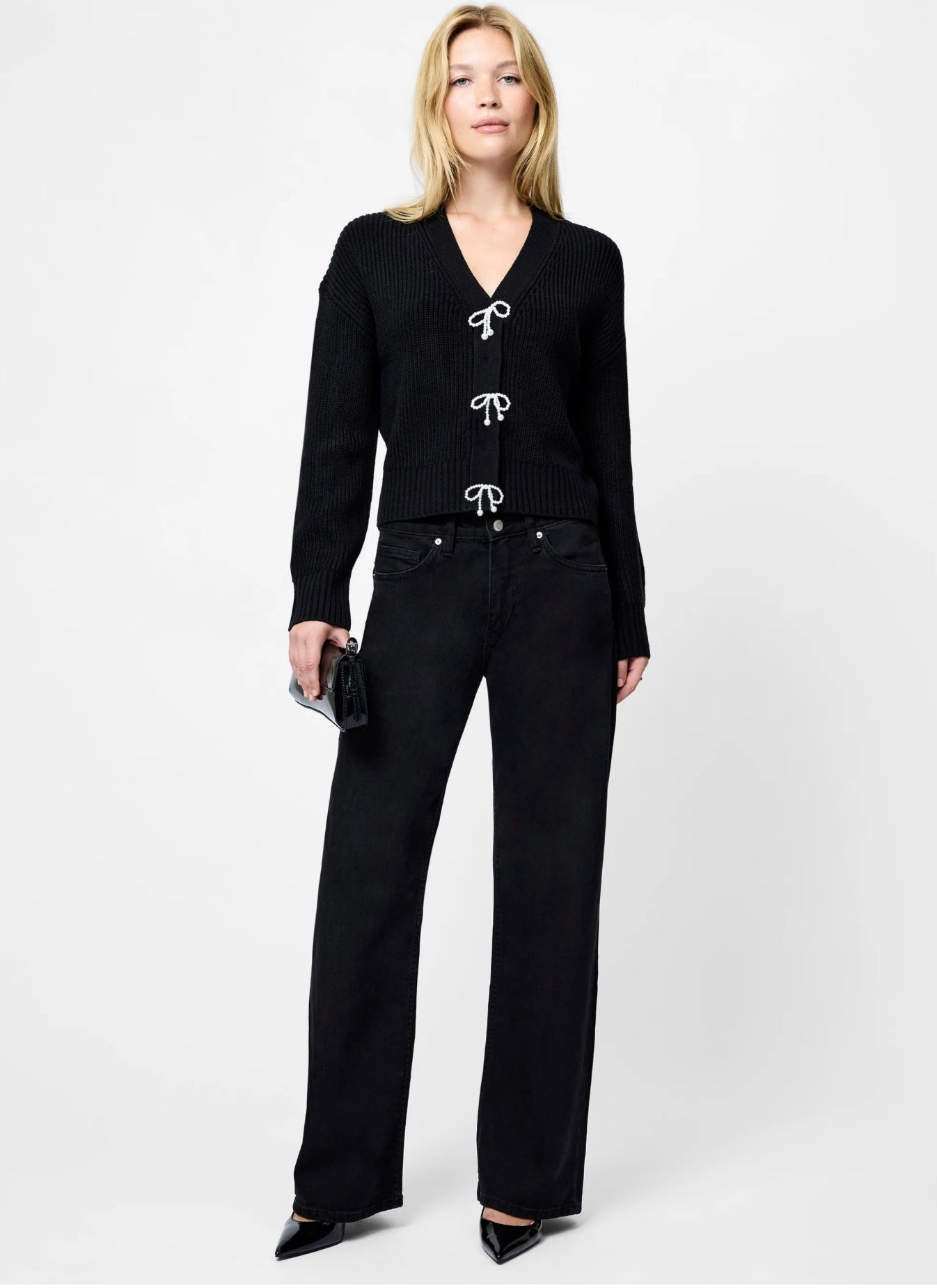 Sweet, soft, and just the right amount of statement. The Babysoft Pearl Bow Sweater adds a playful twist to your knitwear rotation, designed with a relaxed fit and charming pearl-adorned bows down the front. Whether layered over a slip dress or styled with denim, it’s an easy way to bring a little romance into everyday dressing.