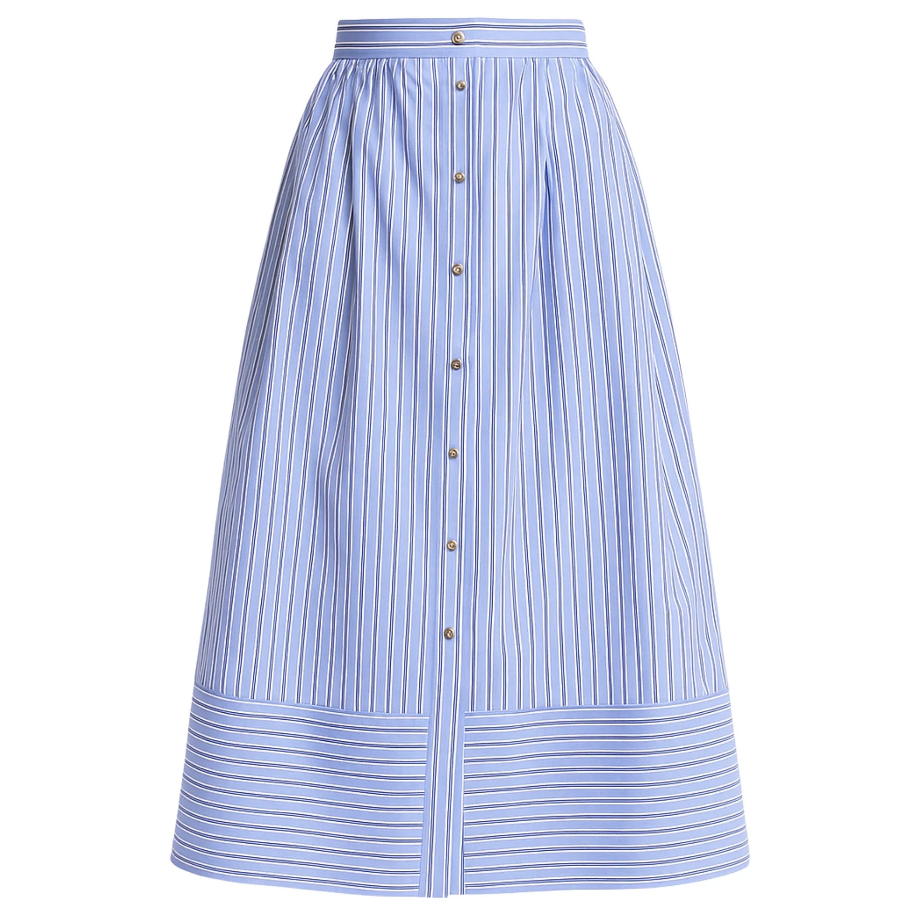 Twirl into fun with our Malaga Stripe Skirt! This bouncy blue-striped beauty features a flirty button front and eye-catching contrasting blue stripes at the hem and waistband. Perfect for mixing and matching, this skirt brings playful vibes to any outfit. Pair with a simple tee for instant happy-chic style that'll have you skipping through your day!