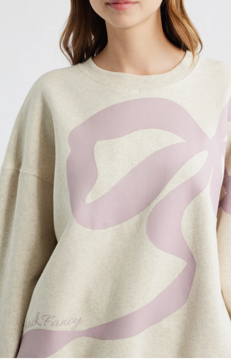 Dropped shoulders enhance the relaxed fit of this comfy cotton-blend sweatshirt made with a sweet swirling print.